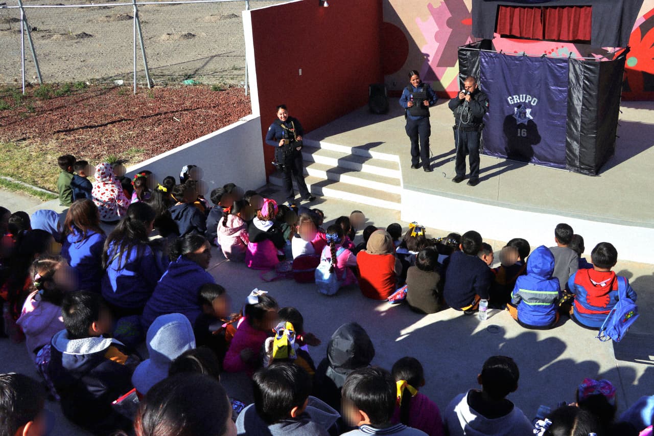 La Secretaría de Seguridad Pública Municipal, a través de la Dirección de Prevención Social, continúa fortaleciendo las acciones preventivas dirigidas a la niñez juarense mediante el “Teatrino”.