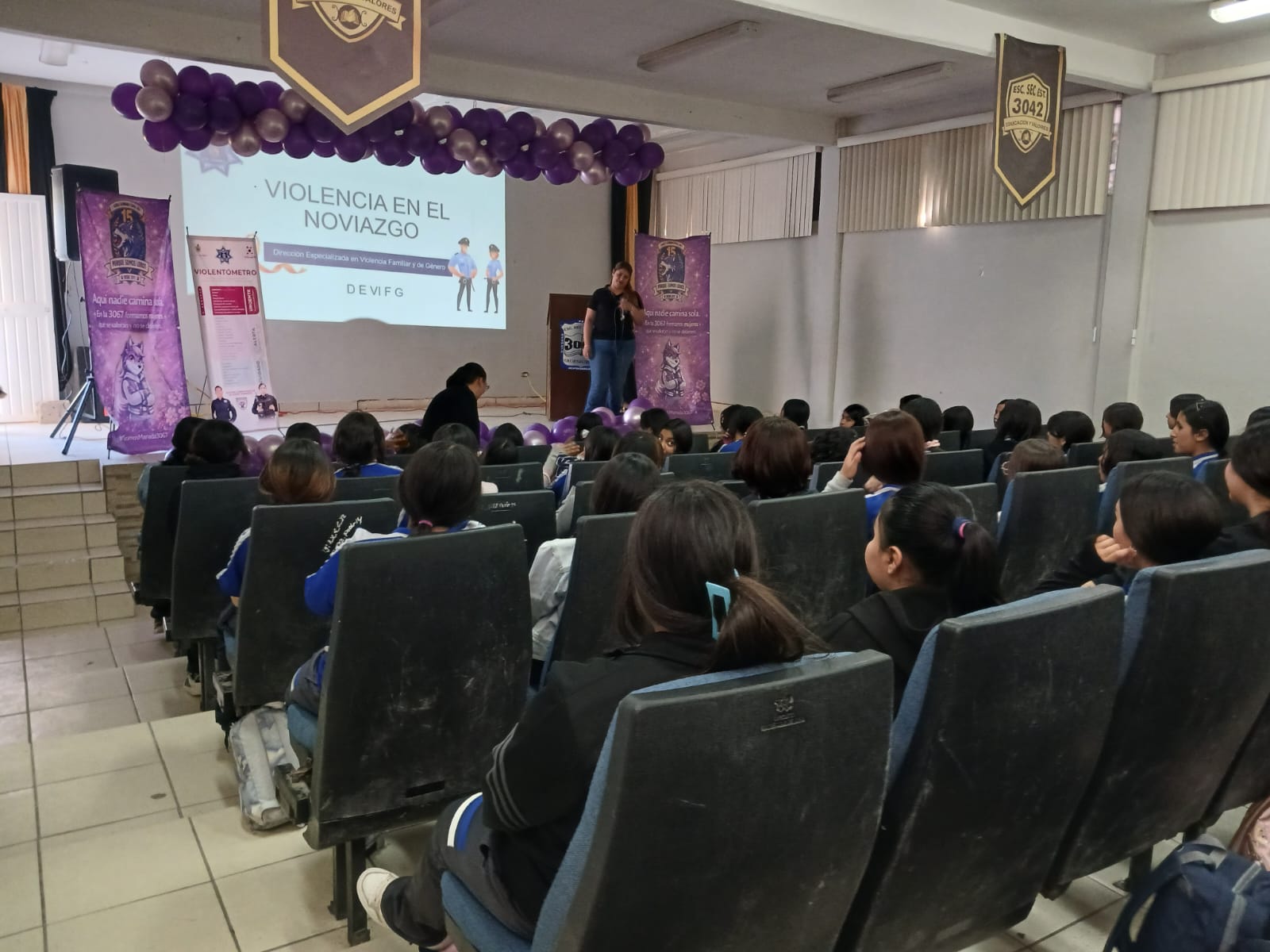 Elementos de la Secretaría de Seguridad Pública Municipal, adscritos a la Dirección Especializada en Violencia Familiar y de Género (DEVIFG), llevó a cabo la impartición de pláticas preventivas con el tema “Violencia en el noviazgo” a estudiantes de la escuela secundaria Estatal 3067.