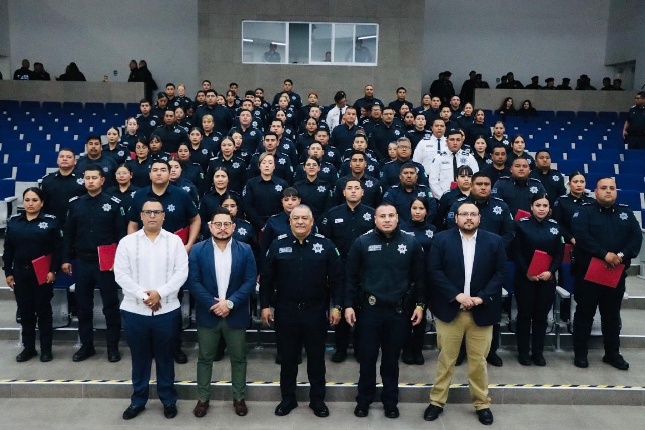 La Secretaría de Seguridad Pública Municipal llevó a cabo la entrega de certificados de nivel preparatoria a 98 elementos de la corporación, quienes concluyeron satisfactoriamente sus estudios a través del Centro Educativo Aula 286, como parte de las acciones encaminadas a fortalecer la profesionalización policial.