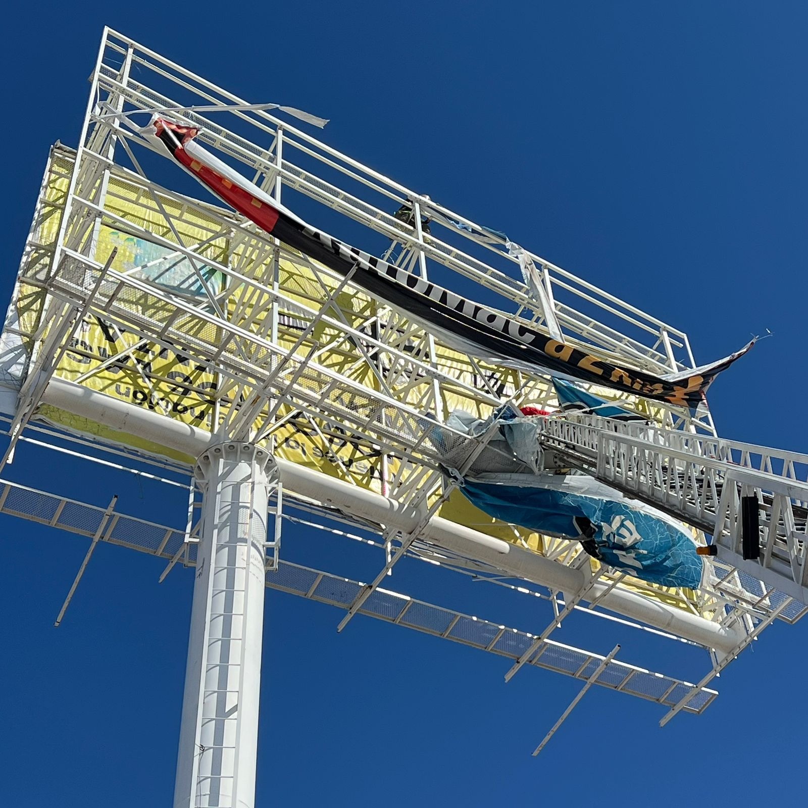 Elementos de la Dirección General de Protección Civil atendieron un reporte relacionado con una lona de publicidad que se estaba a punto de desprenderse de un anuncio espectacular en la colonia Infonavit Casas Grandes.