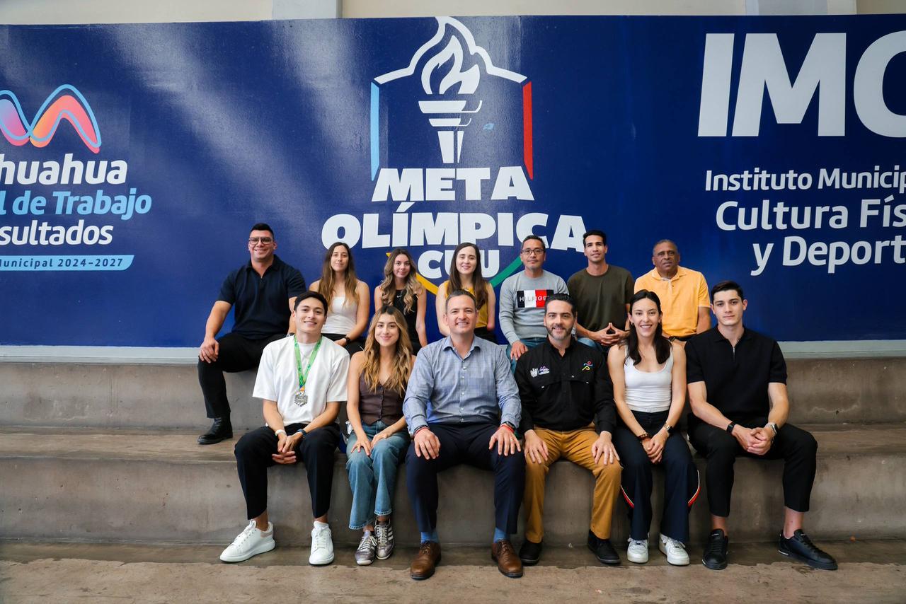 El alcalde de Chihuahua, Marco Bonilla, se reunió con atletas y entrenadores beneficiarios del programa Meta Olímpica CUU, iniciativa del Gobierno Municipal que impulsa el desarrollo de deportistas de alto rendimiento rumbo a los Juegos Olímpicos de Los Ángeles 2028.