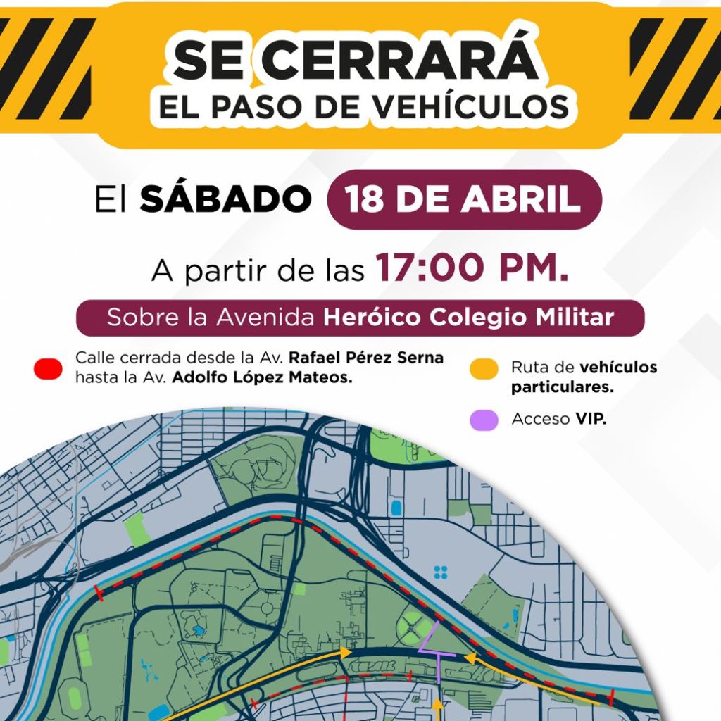 Ante el evento masivo que se llevará a cabo este próximo sábado 18 de abril, la Coordinación General de Seguridad Vial, hace un llamado a la ciudadanía para que tome precauciones, debido al cierre de calles que se estará realizando, esto con el fin de evitar percances viales y garantizar la seguridad de los asistentes. Será a partir de las…