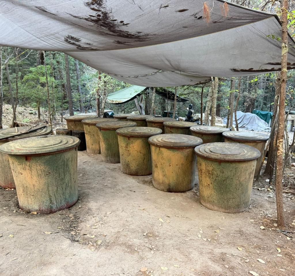 En operativo conjunto, la Agencia Estatal de Investigaciones (AEI) y la Secretaría de la Defensa Nacional (Sedena) localizaron dos laboratorios, al parecer de producción de drogas sintéticas y un campamento con víveres para consumo humano.