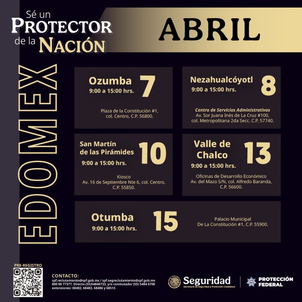 La Secretaría de Seguridad y Protección Ciudadana (SSPC) continúa con la convocatoria 2026 dirigida a mujeres y hombres de 18 a 65 años, de todo el país, para participar en el proceso de reclutamiento, selección, capacitación e ingreso al Servicio de Protección Federal (SPF). La convocatoria cuenta con plazas federales como guardias especializados en protección, custodia, vigilancia y seguridad de…